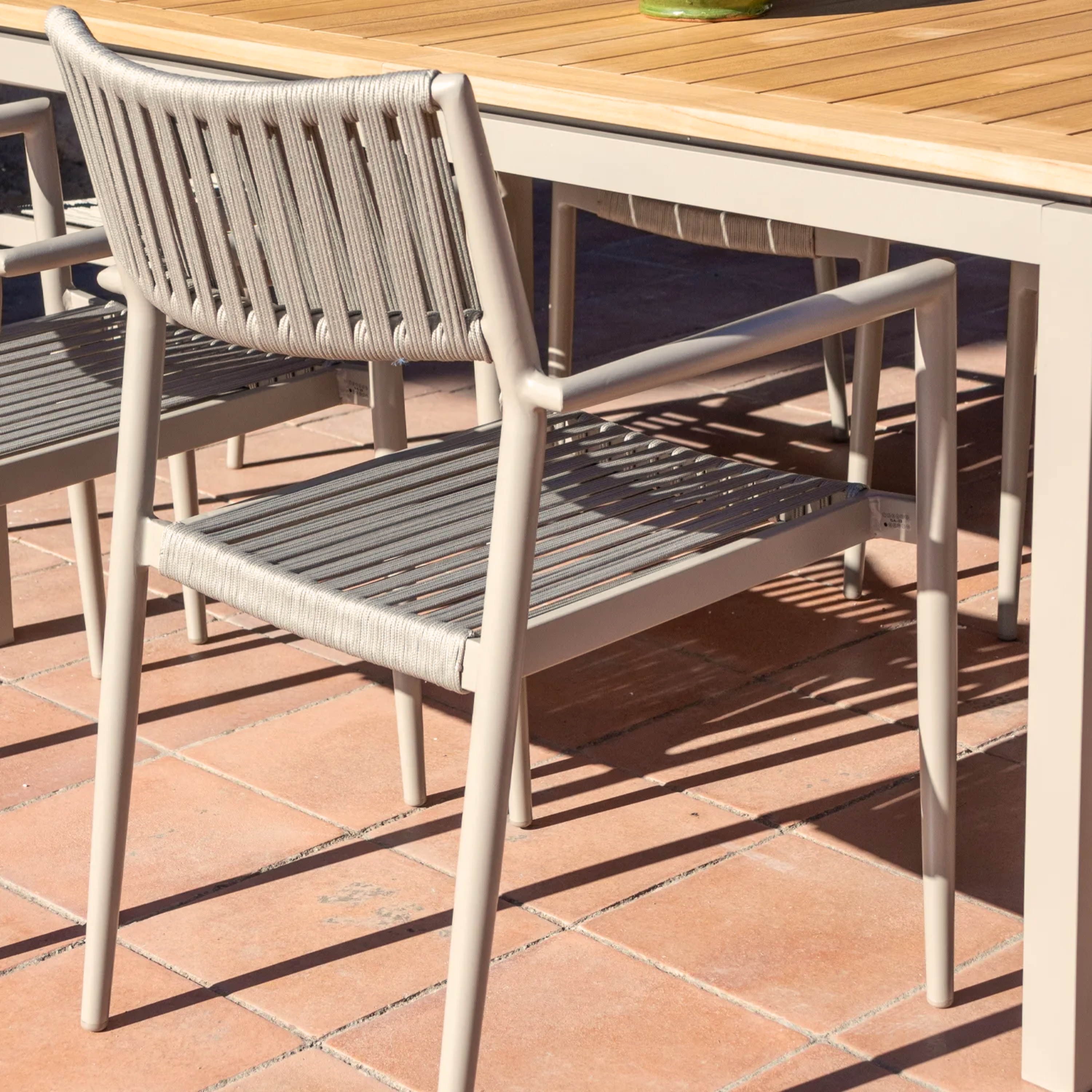 Perfect for terraces, patios, or garden dining areas, the Ontario chair brings a soft, neutral aesthetic that pairs effortlessly with a variety of outdoor tables and settings.