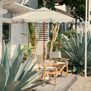 Patio Umbrella - Lauren's Navy Stripe + Clamshell Base